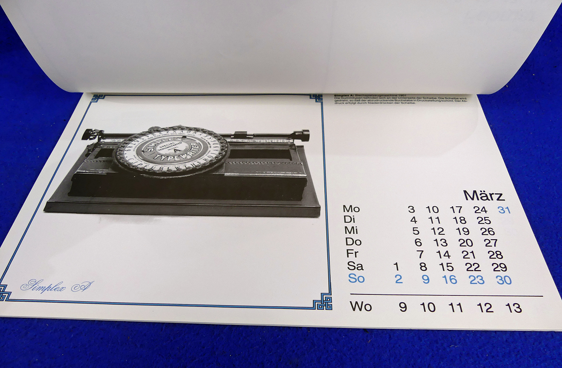 Kalender Historische Schreibmaschinen 1986